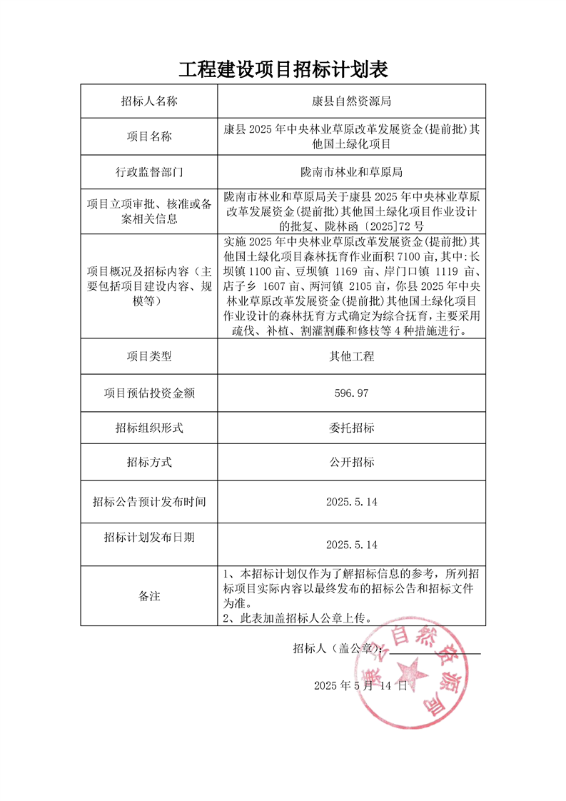 康縣2025年中央林業(yè)草原改革發(fā)展資金(提前批)其他國(guó)土綠化項(xiàng)目