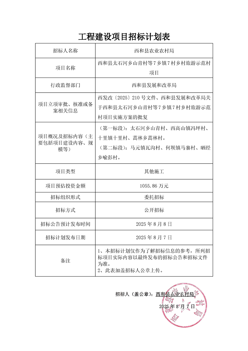 西和縣太石河鄉(xiāng)山青村等7鄉(xiāng)鎮(zhèn)7村鄉(xiāng)村旅游示范村項目