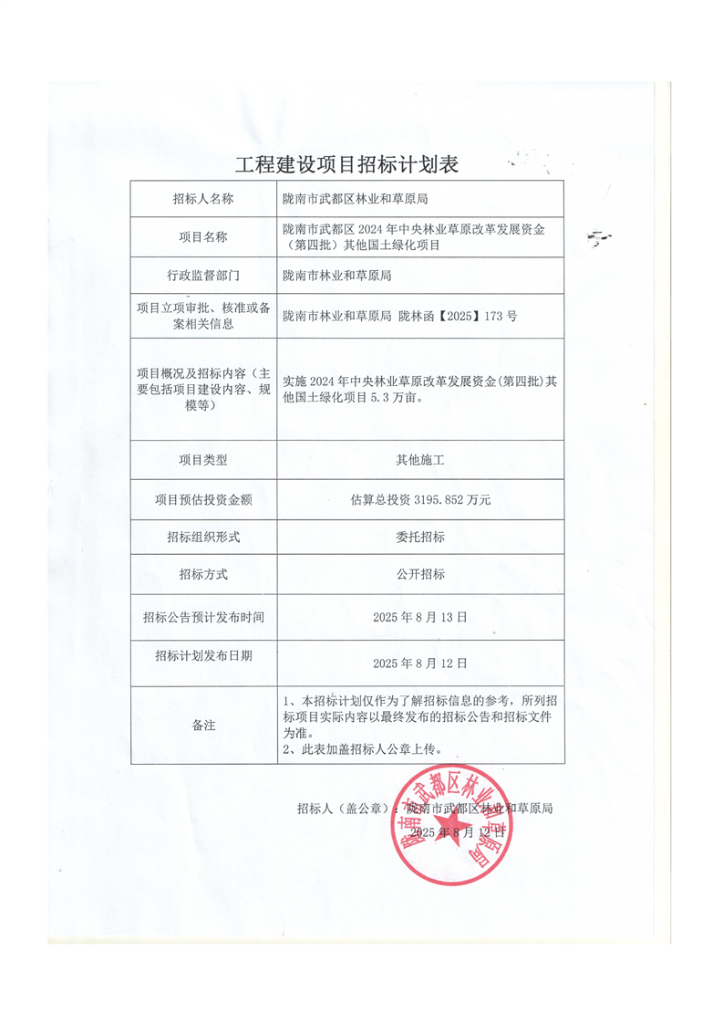 隴南市武都區(qū)2024年中央林業(yè)草原改革發(fā)展資金(第四批)其他國(guó)土綠化項(xiàng)目