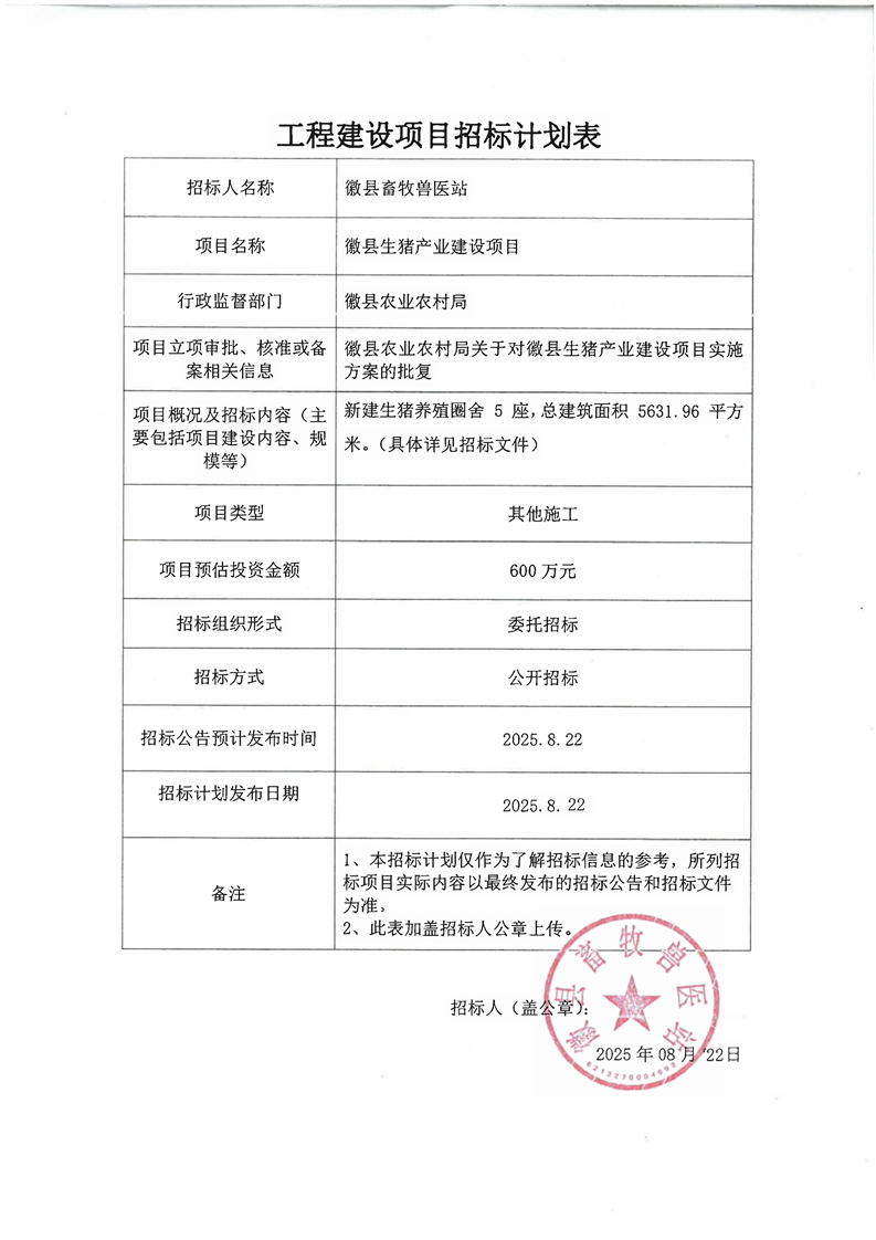 徽縣生豬產(chǎn)業(yè)建設(shè)項目