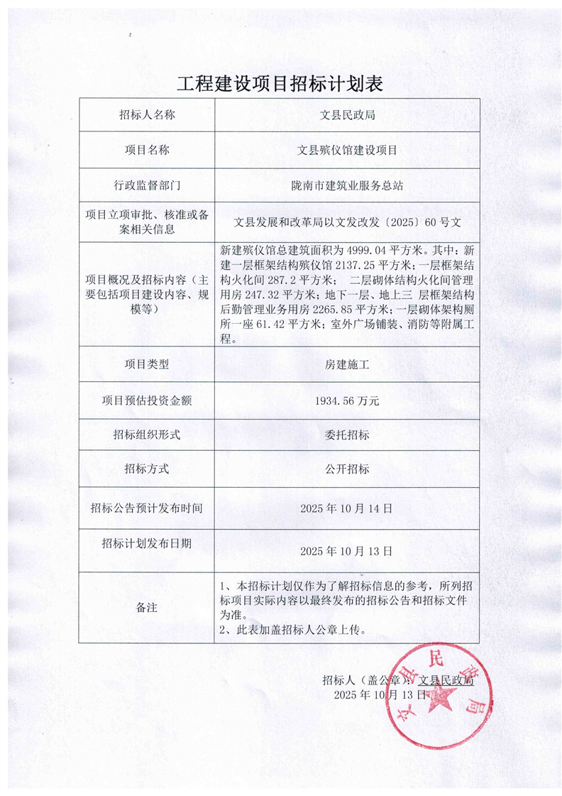 文縣殯儀館建設(shè)項(xiàng)目