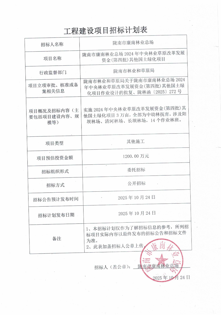 隴南市康南林業(yè)總場2024年中央林業(yè)草原改革發(fā)展資金(第四批)其他國土綠化項(xiàng)目