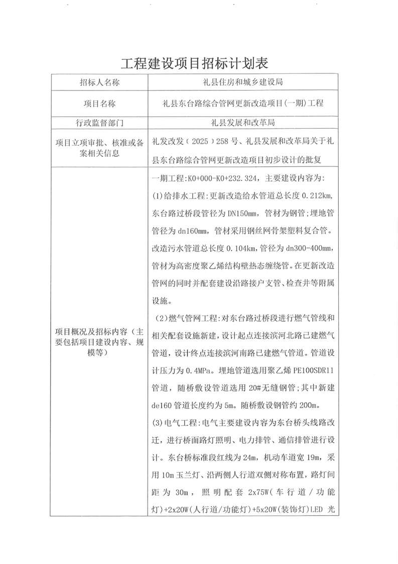 禮縣東臺路綜合管網(wǎng)更新改造項目(一期)工程