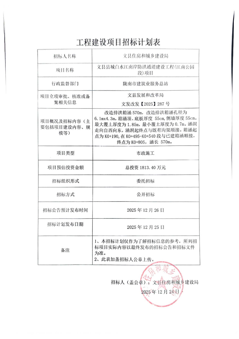 文縣縣城白水江南岸防洪通道建設工程(江南公園段)項目