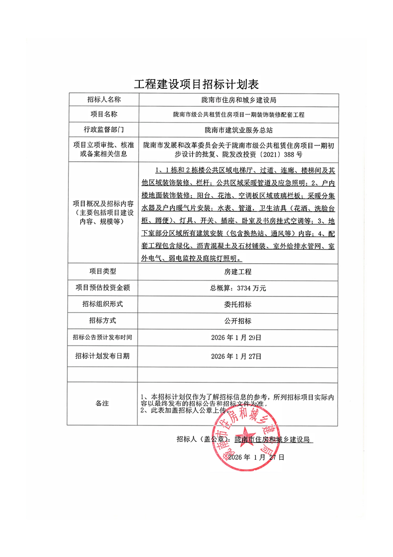 隴南市級(jí)公共租賃住房項(xiàng)目一期裝飾裝修配套工程
