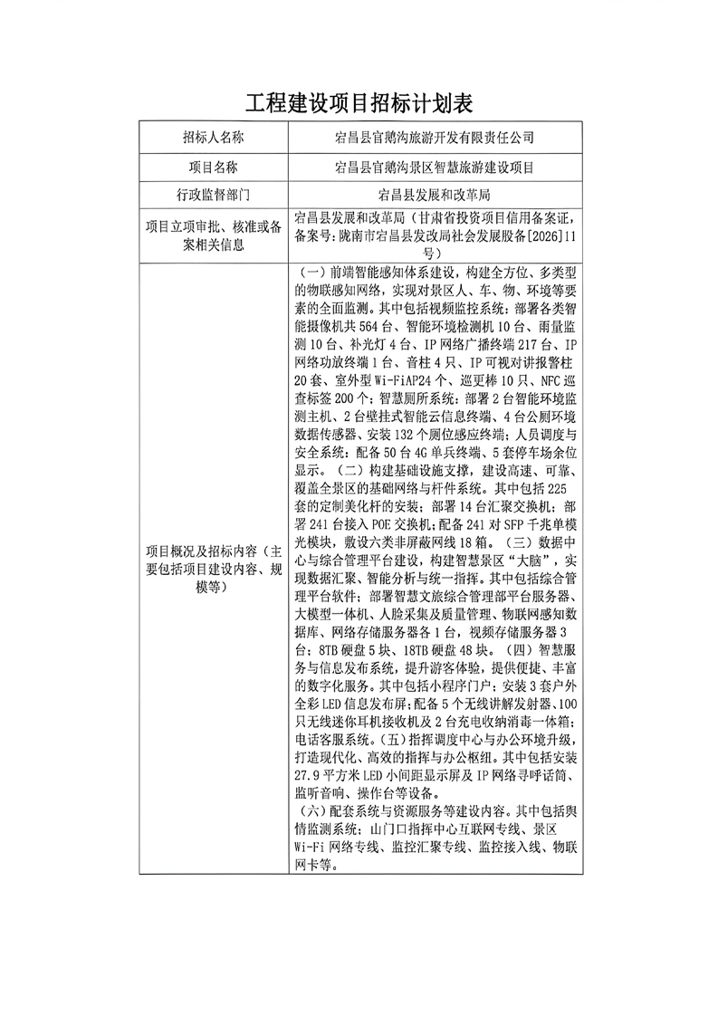 宕昌縣官鵝溝景區(qū)智慧旅游建設(shè)項目