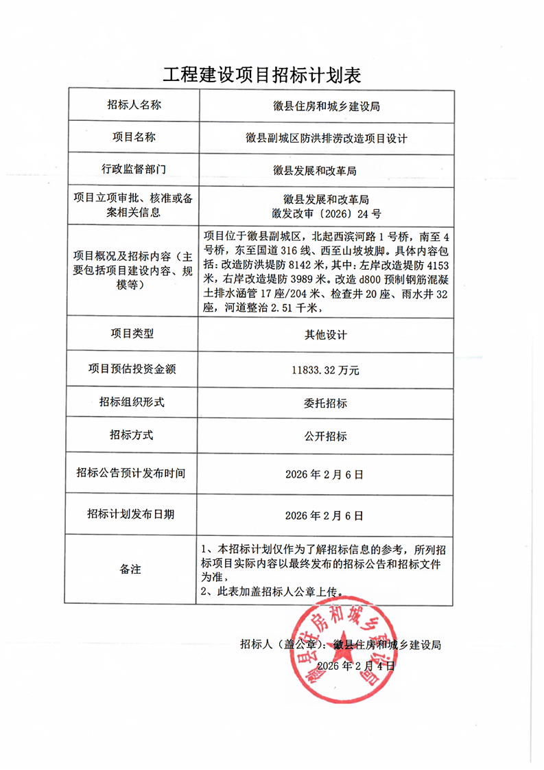 首頁(yè) > 交易信息 > 工程建設(shè) > 項(xiàng)目招標(biāo)計(jì)劃