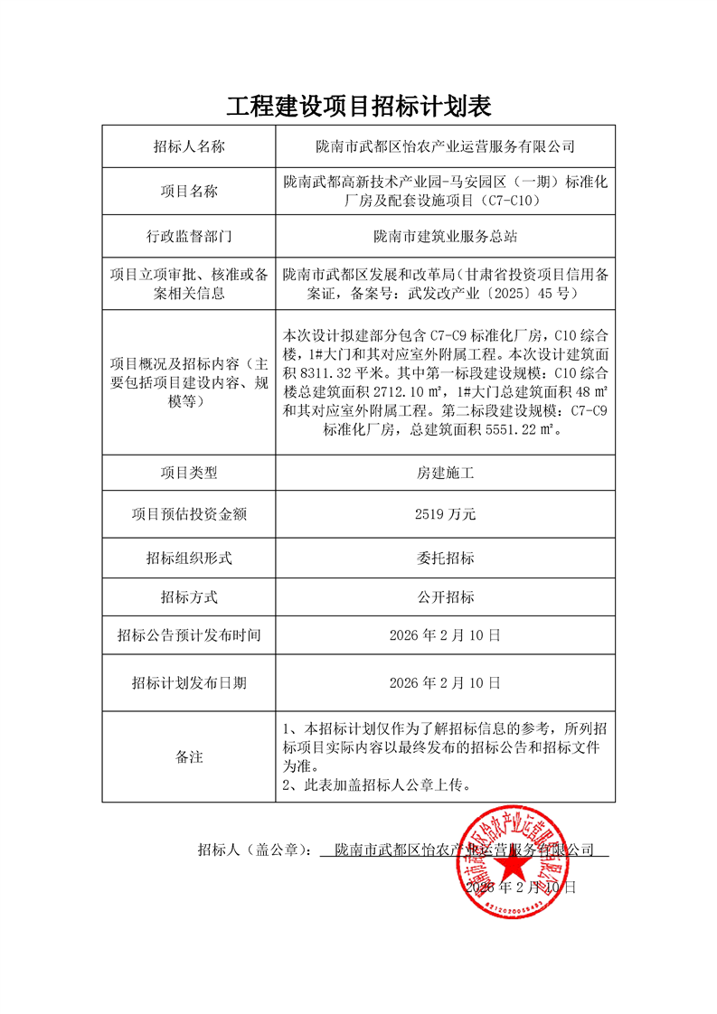 附件:施工招標(biāo)計(jì)劃表—隴南武都高新技術(shù)產(chǎn)業(yè)園-馬安園區(qū)(一期)標(biāo)準(zhǔn)化廠房及配套設(shè)施項(xiàng)目(C7-C10).pdf