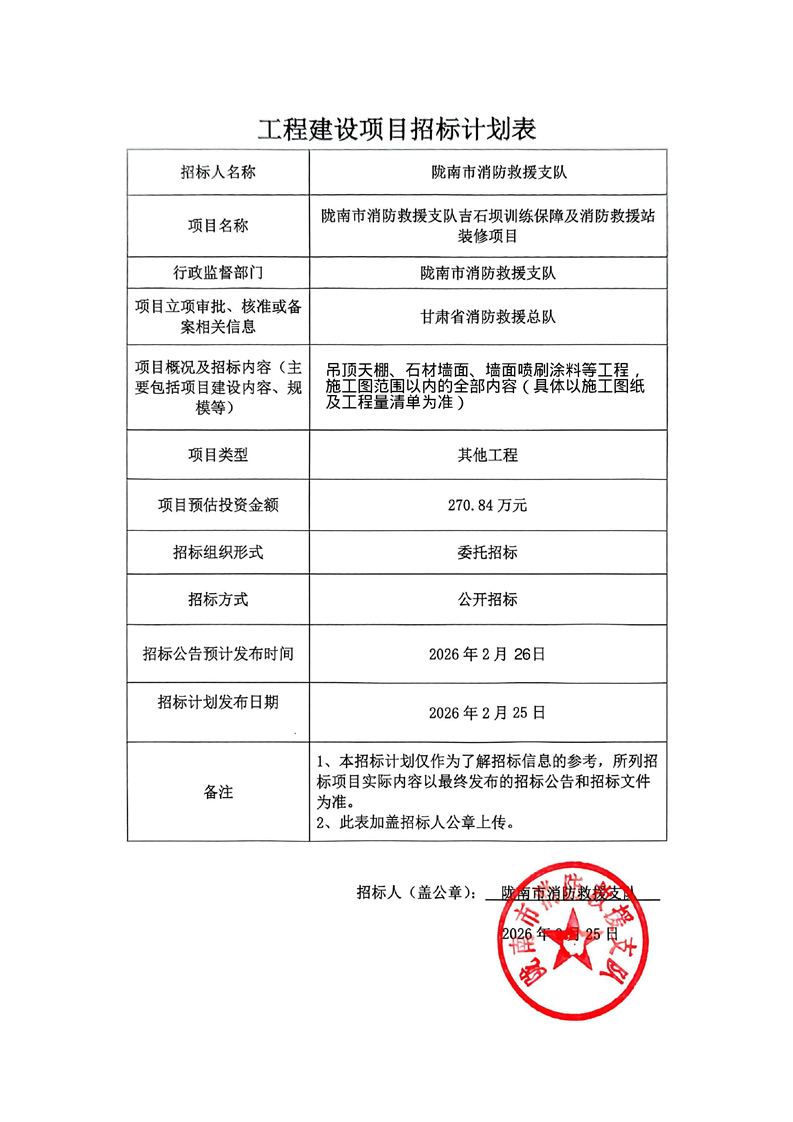 隴南市消防救援支隊吉石壩訓練保障及消防救援站裝修項目