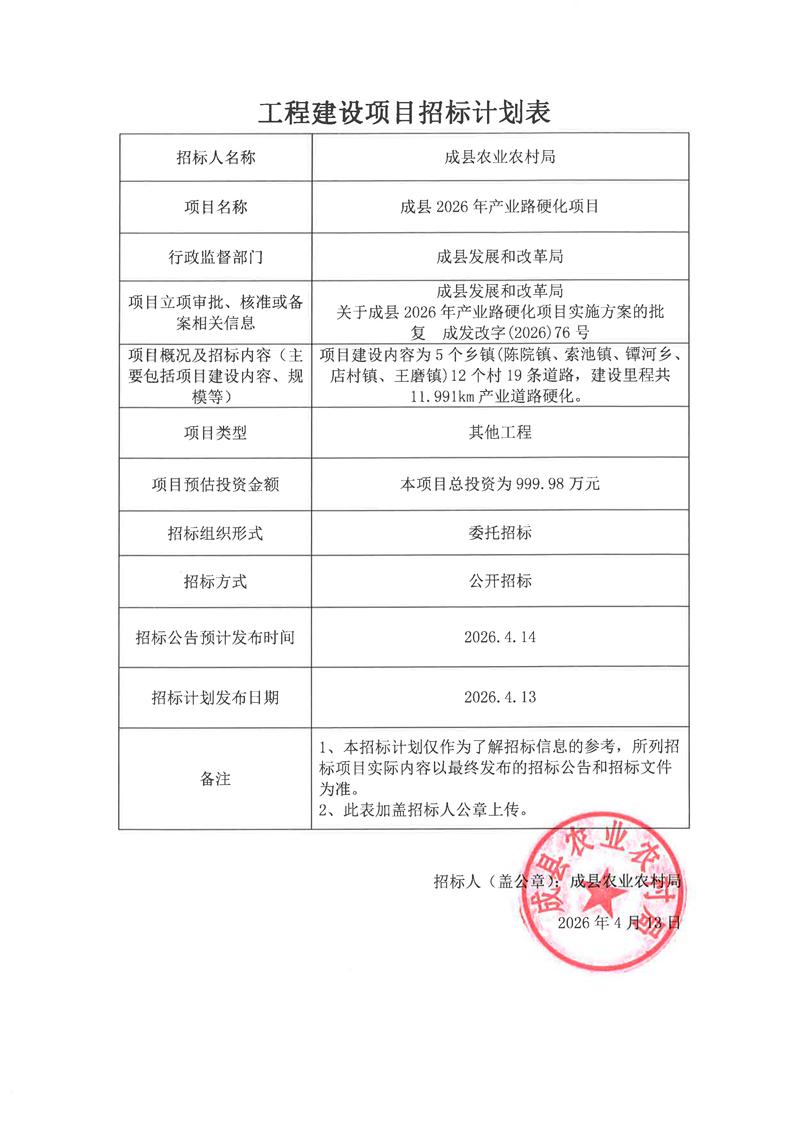 成縣2026年產(chǎn)業(yè)路硬化項(xiàng)目