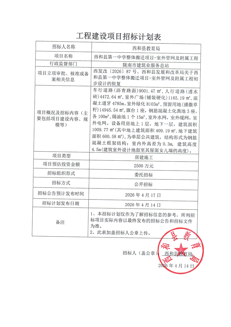 首頁 > 交易信息 > 工程建設 > 項目招標計劃