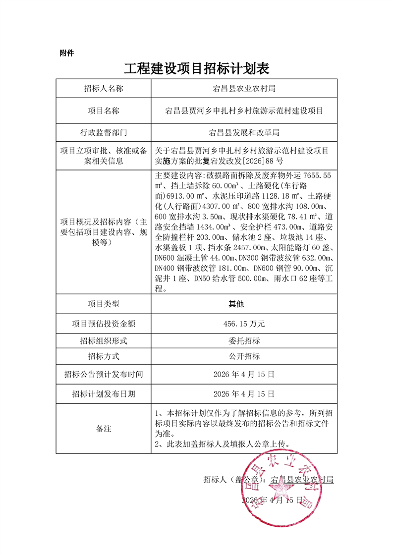 宕昌縣賈河鄉(xiāng)申扎村鄉(xiāng)村旅游示范村建設(shè)項(xiàng)目