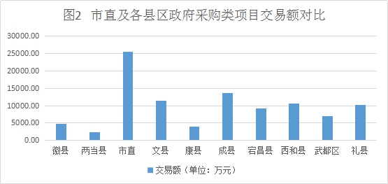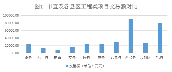 1.工程類項目:市直6項,交易額8655.19萬元;武都區(qū)29項,交易額27254.23萬元;成縣24項,交易額23254.25 萬元;徽縣26項,交易額23476.37萬元;西和縣70項,交易額90305.24萬元;禮縣41項,交易額80922.67萬元;康縣29項,交易額24450.87萬元;文縣17項,交易額17048.62萬元;宕昌縣34項,交易額30189.76萬元;兩當(dāng)縣7項,交易額13081.40萬元。