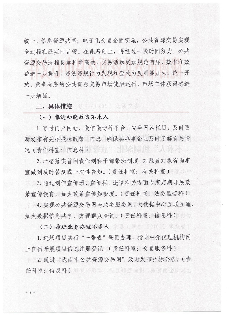 隴南市公共資源交易中心關于加快建立“辦事不求人”機制深化“放管服”改革的通知