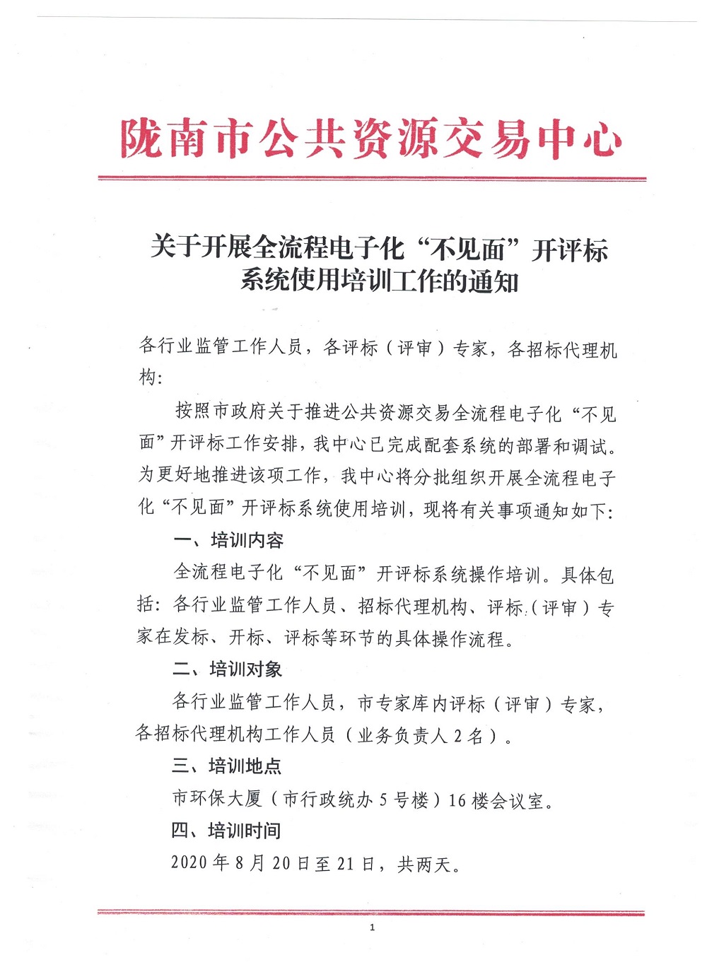 關于開展全流程電子化“不見面”開評標系統(tǒng)使用培訓工作的通知